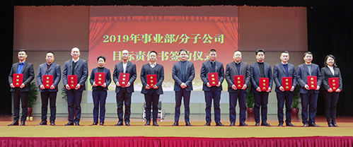 大會(huì)對(duì)2018年度先進(jìn)集體和個(gè)人進(jìn)行表彰,五位獲獎(jiǎng)代表分別進(jìn)行經(jīng)驗(yàn)分享。各事業(yè)部及分子公司一把手與總裁簽訂2019年目標(biāo)責(zé)任書。