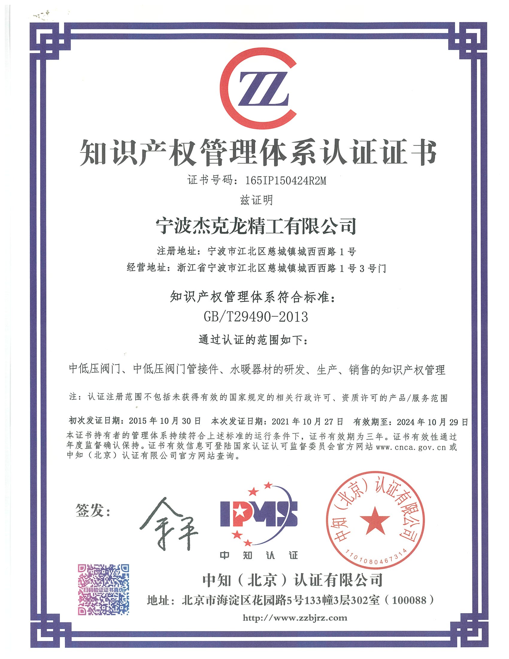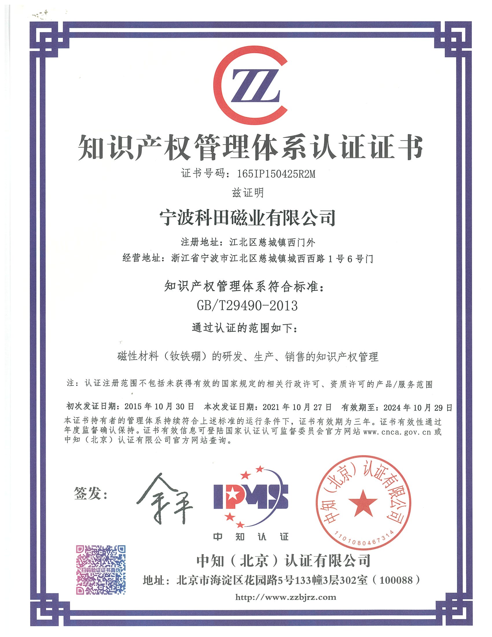公司下屬子公司寧波科田磁業(yè)有限公司、寧波杰克龍精工有限公司分別通過了GB/T29490-2013企業(yè)知識(shí)產(chǎn)權(quán)管理體系認(rèn)證。