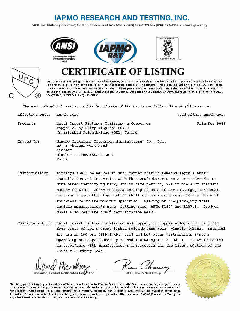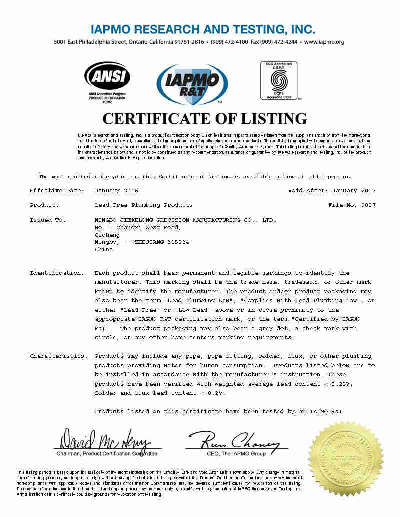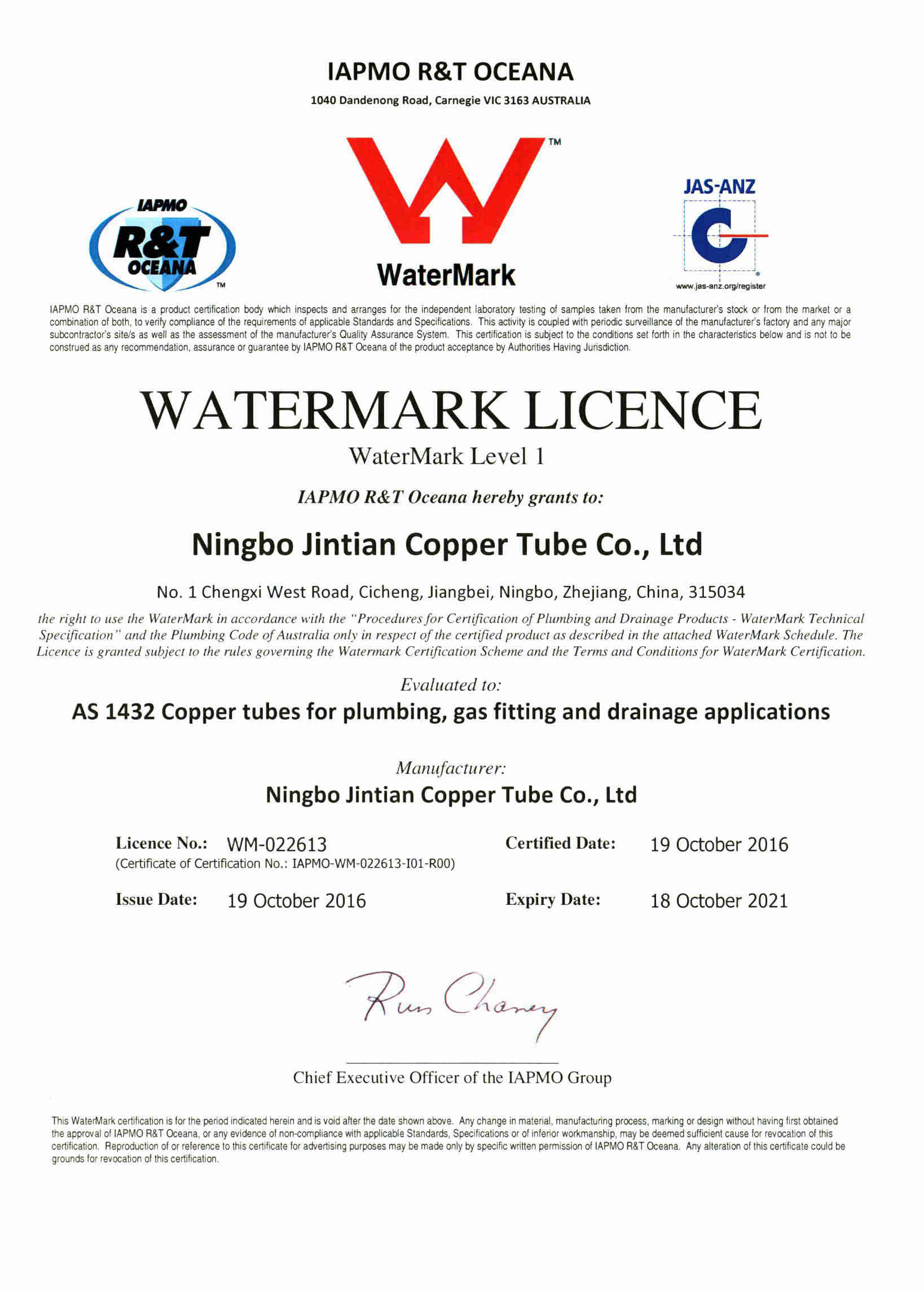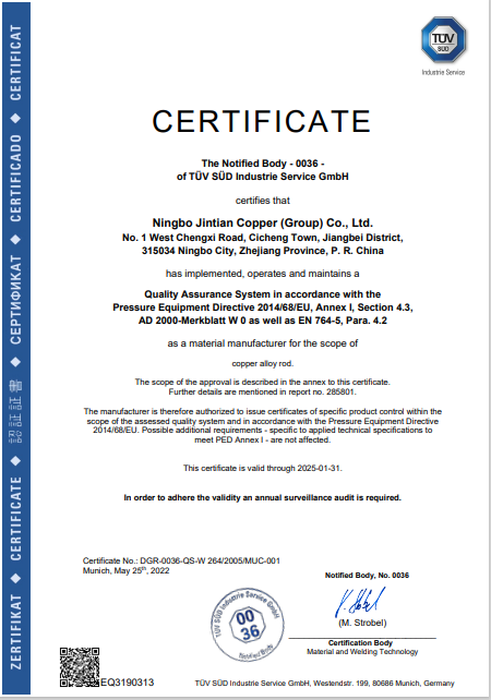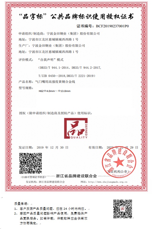 公司積極采用國際國外先進標準,銅棒、銅管、漆包線、閥門等產(chǎn)品分別通過了PED、ASTM、JIS、UL、UPC等國際產(chǎn)品認證,氣門嘴用高強度黃銅合金線、閥門、燃氣等六類產(chǎn)品獲得浙江制造品牌認證授權證書。